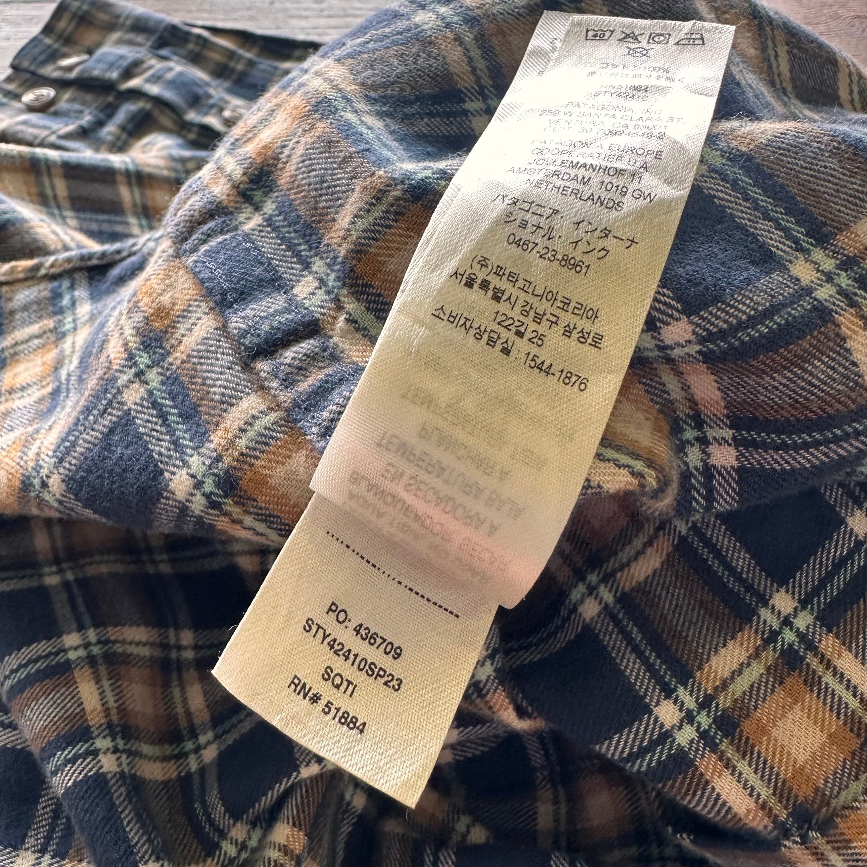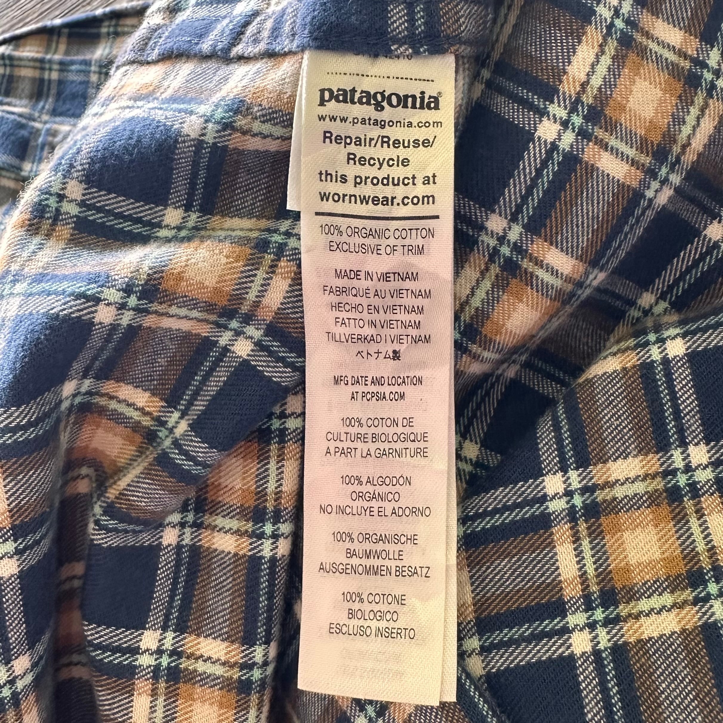パタゴニアのライトウェイトフィヨルドシャツ。おそらく未使用品です。裾の部分の生地に問題がある為弾かれてしまった商品だと思われます。