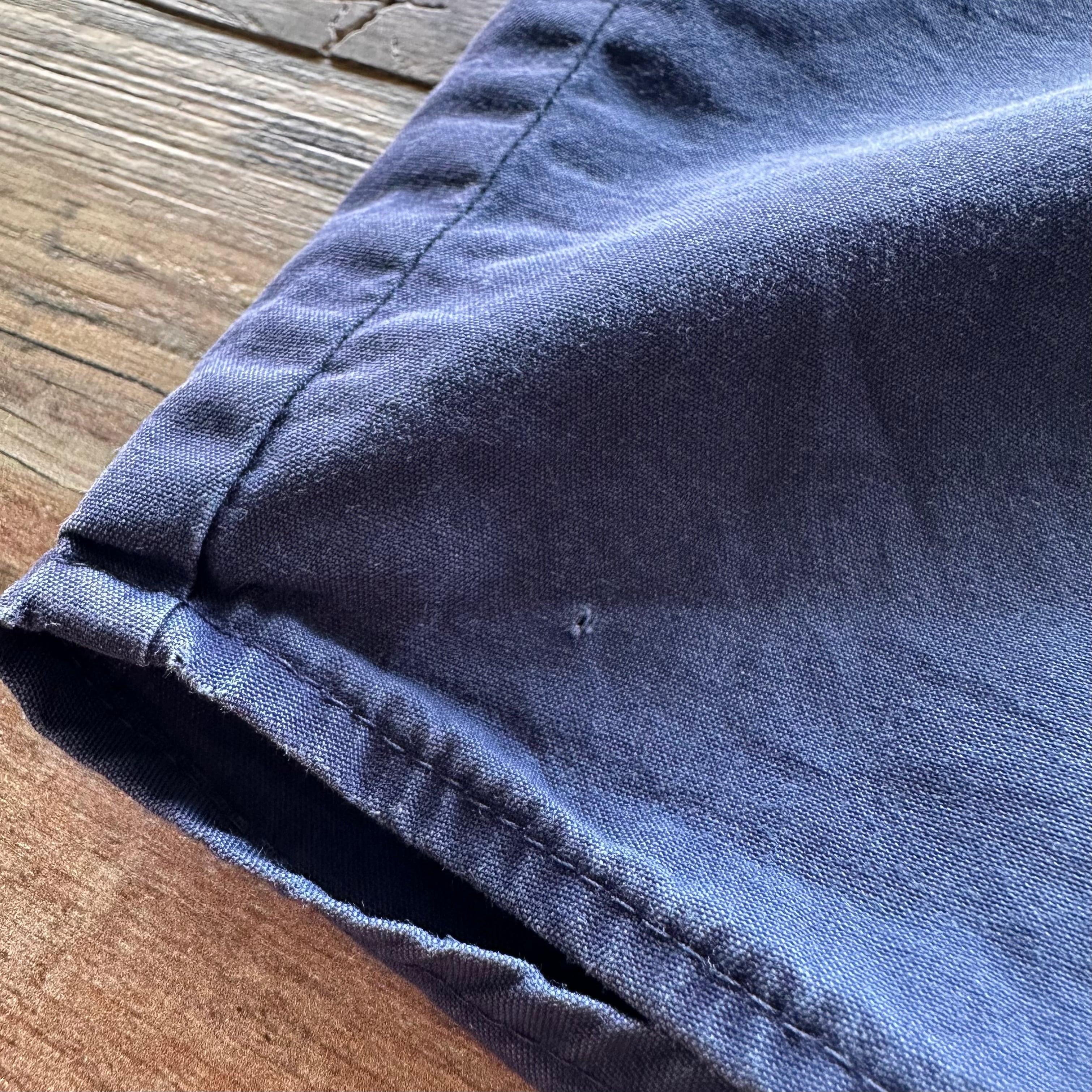 脇の下、襟、裾に生地の擦れでできた小さな穴があります。